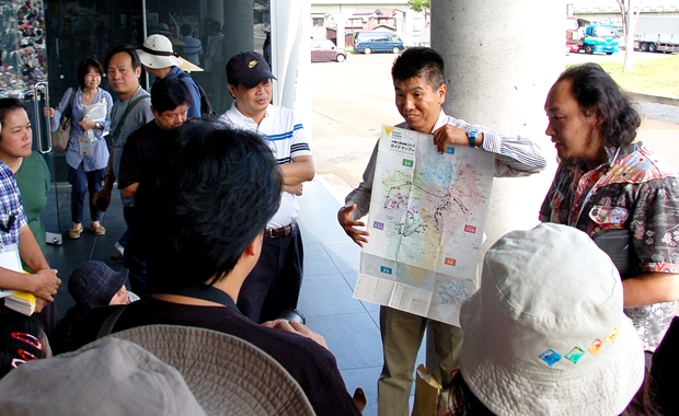(本身為小蛇隊成員的執圖者長谷川先生,正職為多語導遊,於藝術祭舉行期間對於國際人士協助甚大,可說是透過專業能力貢獻的案例之一。攝/詹蕙真 )