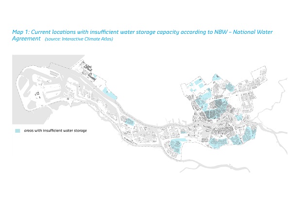 在此雙重背景下,2005 年鹿特丹建築雙年展 IABR 主題定為 THE FLOOD 。在展覽中鹿特丹展現了過去一直以來對於水資源議題的熟悉,然而,鹿特丹對於水計畫及城市空間的策略通常都是針對短程問題,例如對於暴雨管理所提出的策略性方案等,但是對於長程因應氣候變遷的計畫,其實是十分缺乏的。而在雙年展中國際學者對鹿特丹城市規劃提出了一個建議: 為何不把氣候變遷的長程因應計畫,一併納入城市規畫之中呢? 如此一來,「對於鹿特丹而言,氣候變遷是風險,但也是機會」。於是鹿特丹市政府採納了國際學者的建議,開始將氣候變遷一併納入城市規劃之中。自此著手計畫將鹿特丹建立成為一因應氣候變遷的模範城市與知識城市,例如鹿特丹水計劃 2 (Rotterdam Waterplan 2 )。