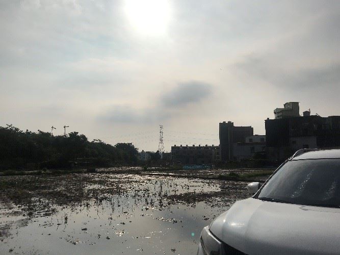 圖/太陽高高掛、藍天、剛翻完土的稻田