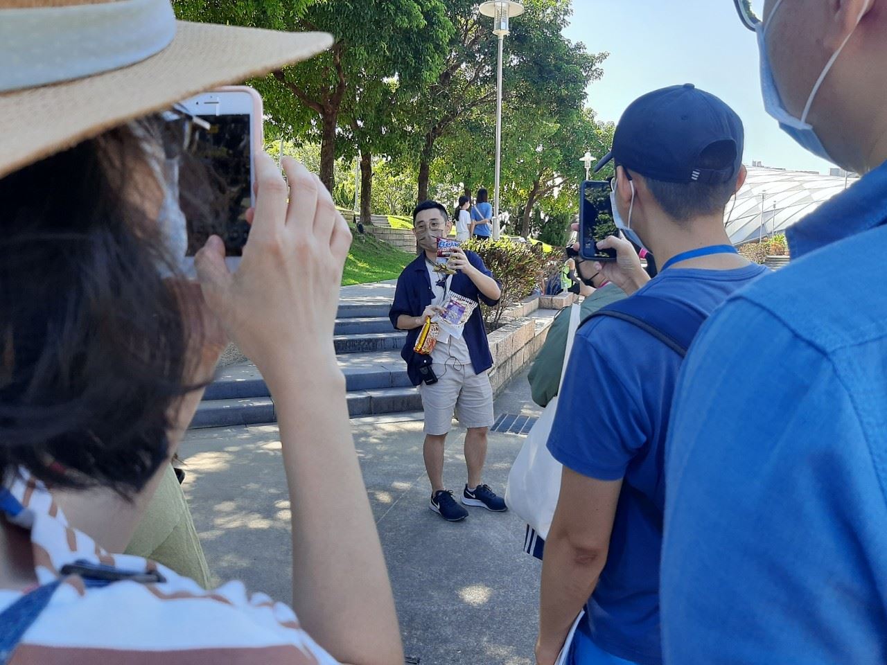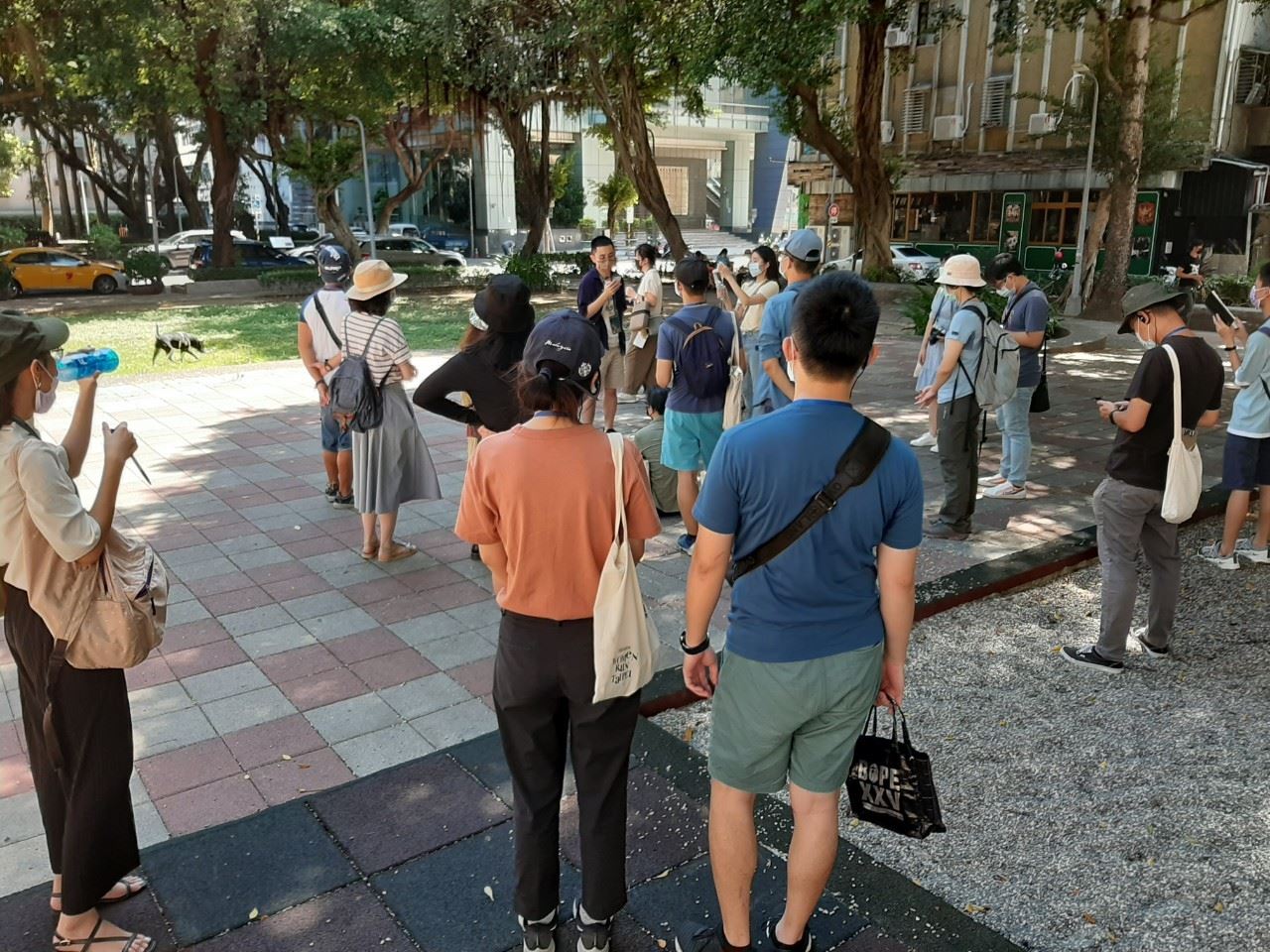 初秋明媚的陽光下,20人的隊伍浩浩蕩蕩,自圓山捷運站1號出口出發,在導覽講師——故事Story Studio的社群經理何昱泓的帶領下,往第一站「花博美術館園區」出發。