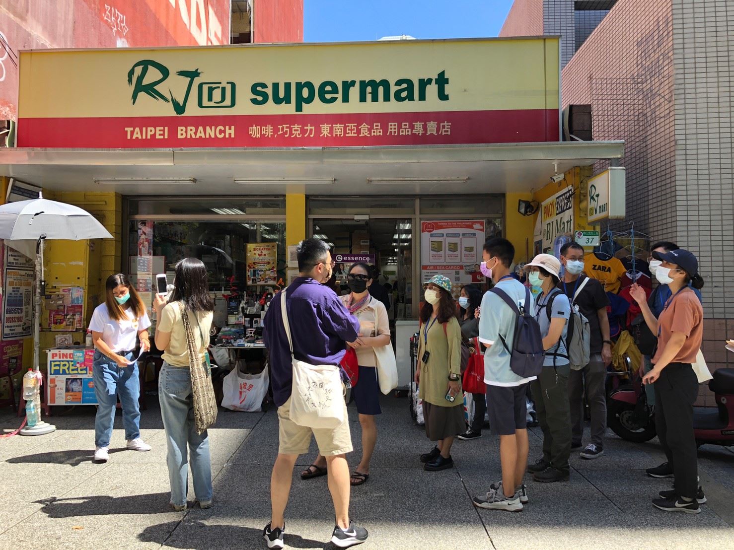 最後一站,半日小旅行團來到兩件比鄰而居的連鎖東南亞超市:「EEC」和RJ挑選一份小旅行的伴手禮,也帶走一份對移工朋友們的好奇與瞭解。許多好市多尺寸的超大份量零食是移工們假日野餐聚會的好選擇,也是寄回家鄉的伴手禮;店內也有提供同胞寄賣手工製作的食物、貨品的區域。