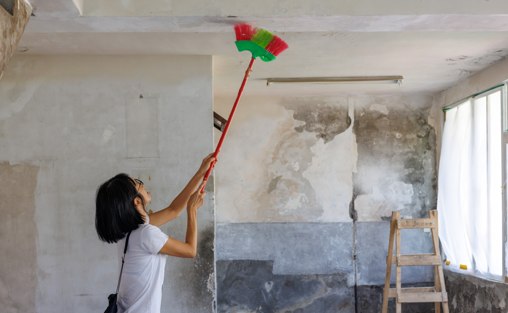 ◼步驟 ⓵| 清除牆面上的生物遺留、灰塵。