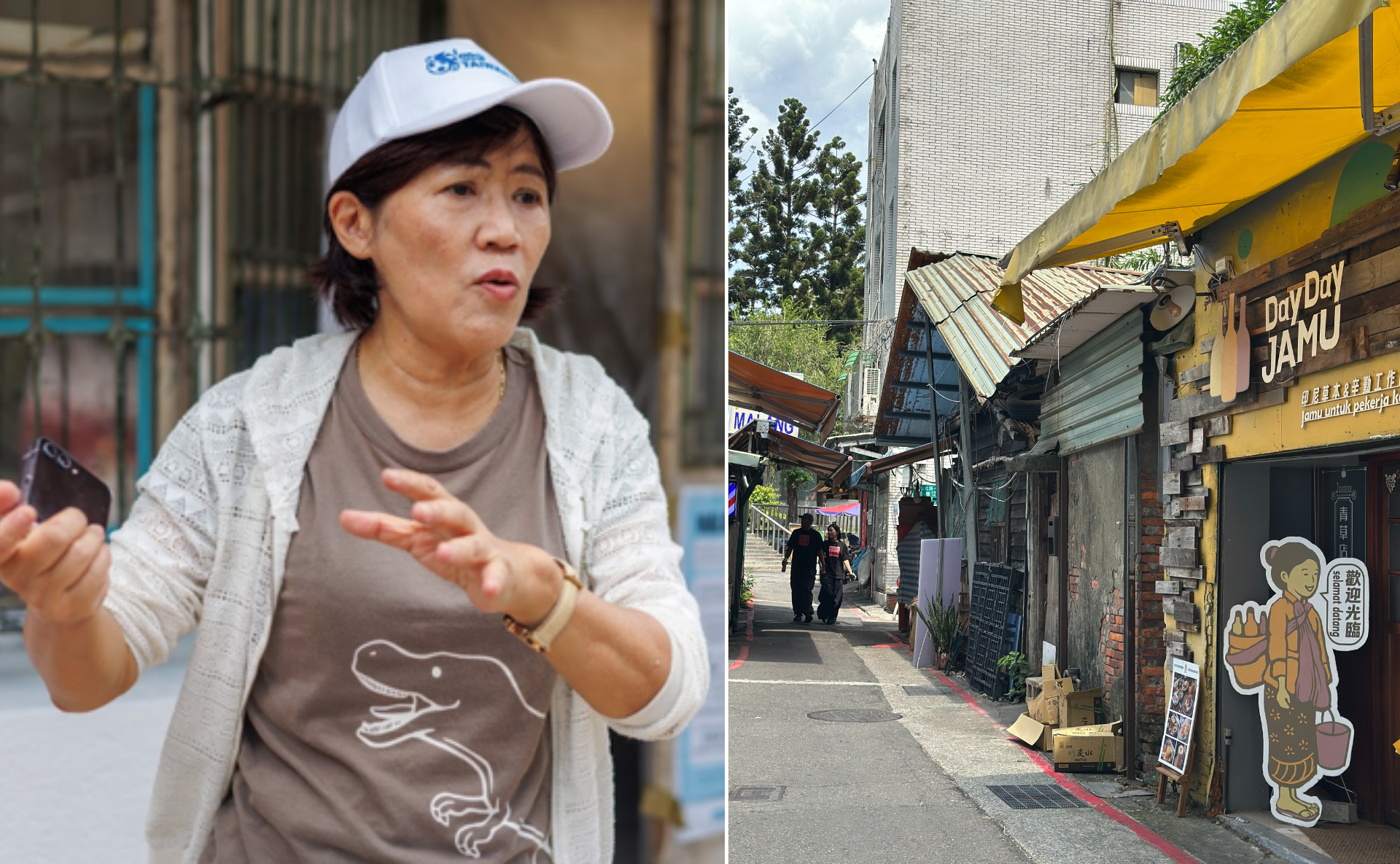 左圖:台灣外籍工作者發展協會理事長徐瑞希。右圖:假日時的中山北路巷弄,印尼小吃店、雜貨店與理髮店熱鬧開張,人聲鼎沸,早已成為外籍工作者在臺北的重要聚落。